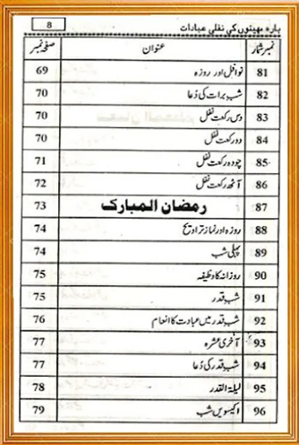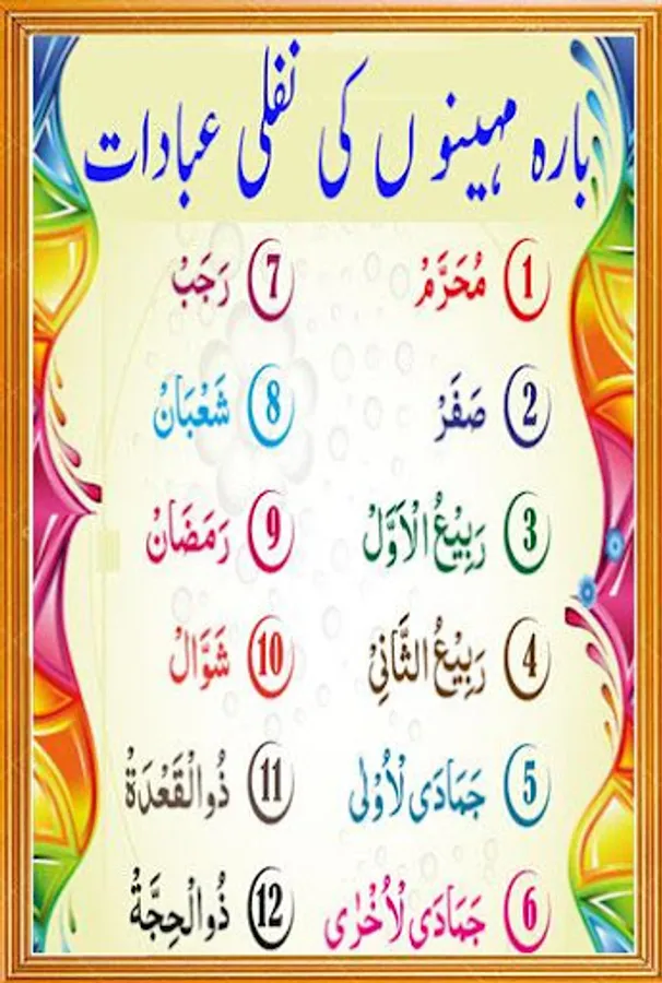 Iss application main follwoing 12 Islamic Maheenon Ki Nafli Ibadat per detail discussion hai: