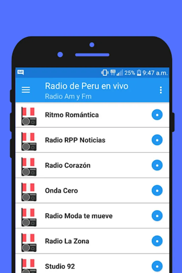 With the Radio de Peru application you can listen to the radio even if you are abroad or while playing or using other applications