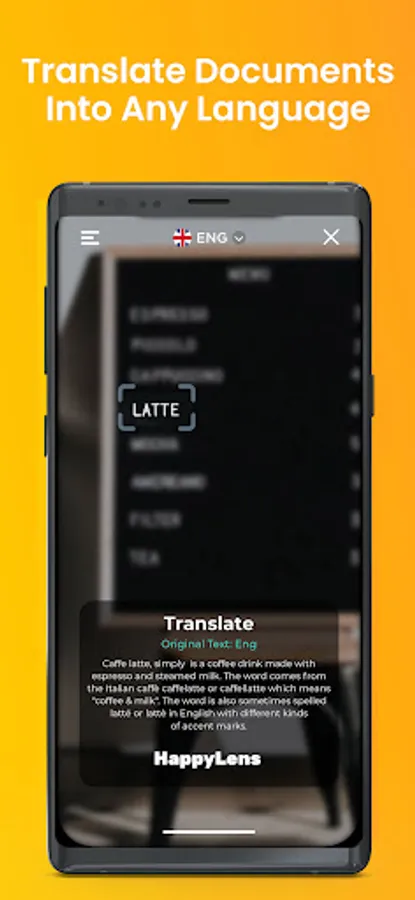 - Text pronouncing: Let your translated text be pronounced by the Happy Lens.
