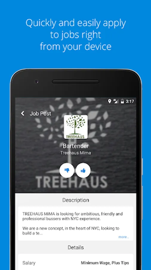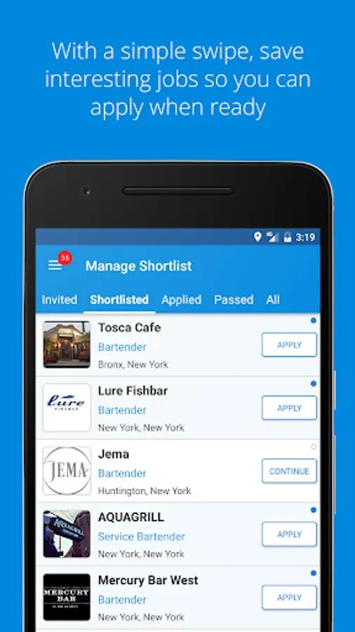 Never let an opportunity pass you by. With the Harri app, you are able to find your next career move and also connect directly with top establishments on your Android. Harri serves up tailored job openings based on your profile. Simply swipe right to save the job to your short list or swipe left to pass. From your shortlist, you can easily apply to these jobs with a few simple clicks. Using the camera on your phone (or pictures and videos from your Android library), you can build a media rich profile so employers can go beyond the outdated resume and truly understand who you are and how you can contribute to their company.