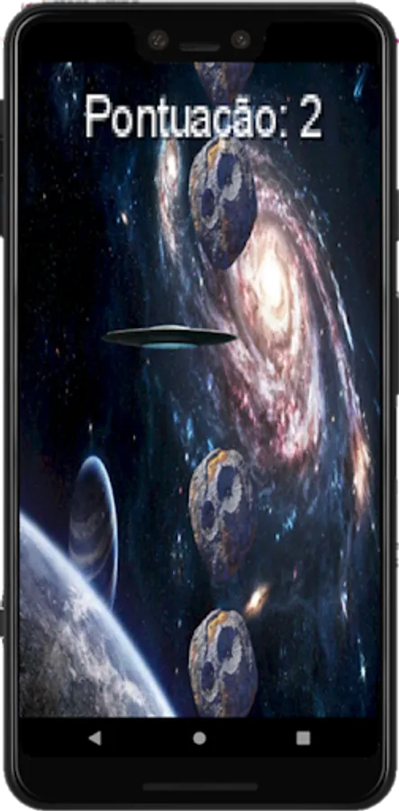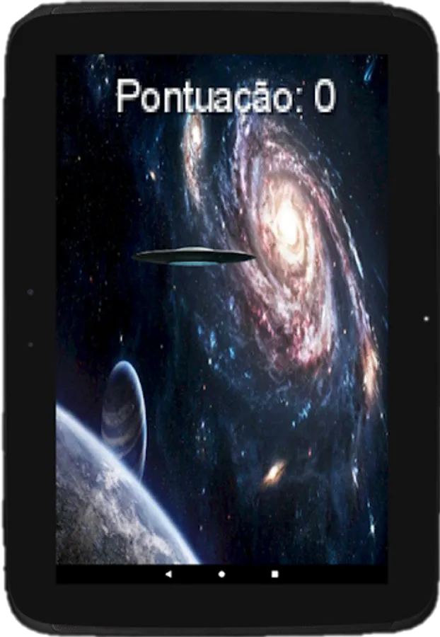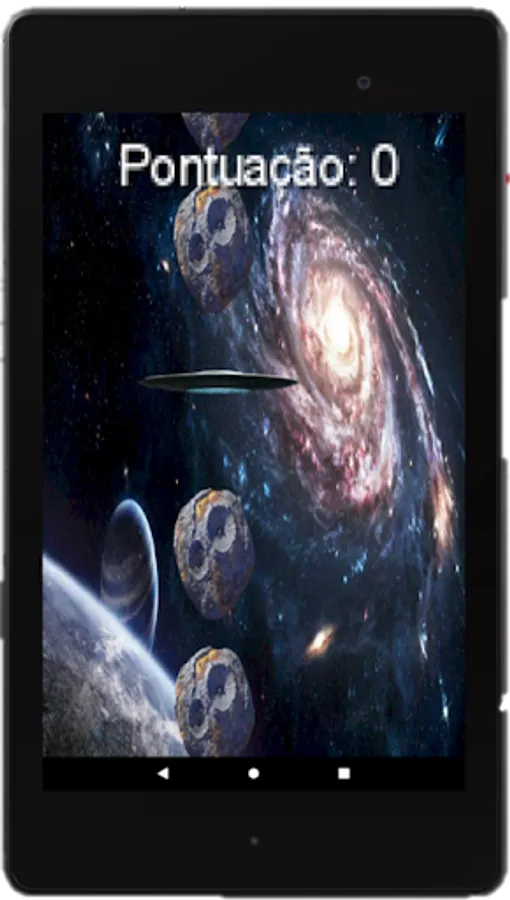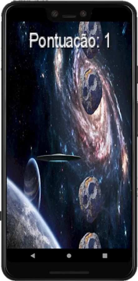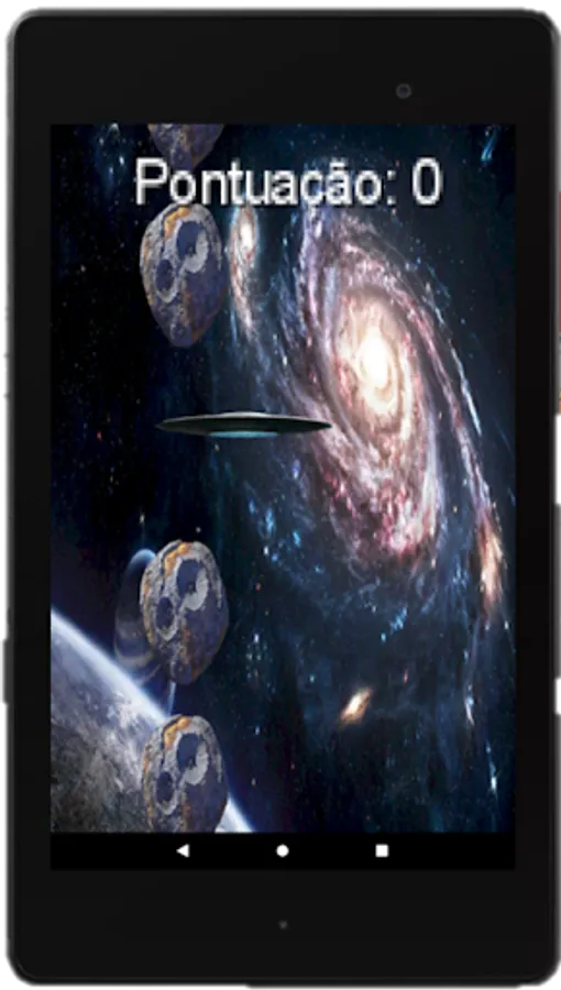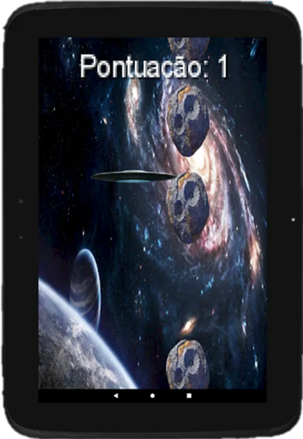 Space scenario game where you have to dodge the meteors with your flying saucer