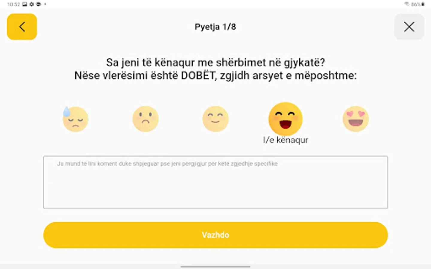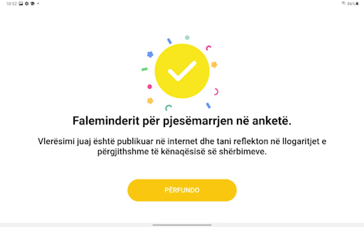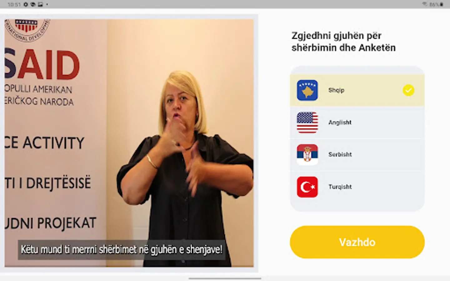 The main purpose of e-Drejtesia applications is to collect satisfaction about the services from the feedback form in the mobile applications and to enable the option of video-call support for people with disabilities within the Judical Courts of Kosovo, Free Legal Advice Agencies and Constitutional Court of Kosovo to get better services and support they need.