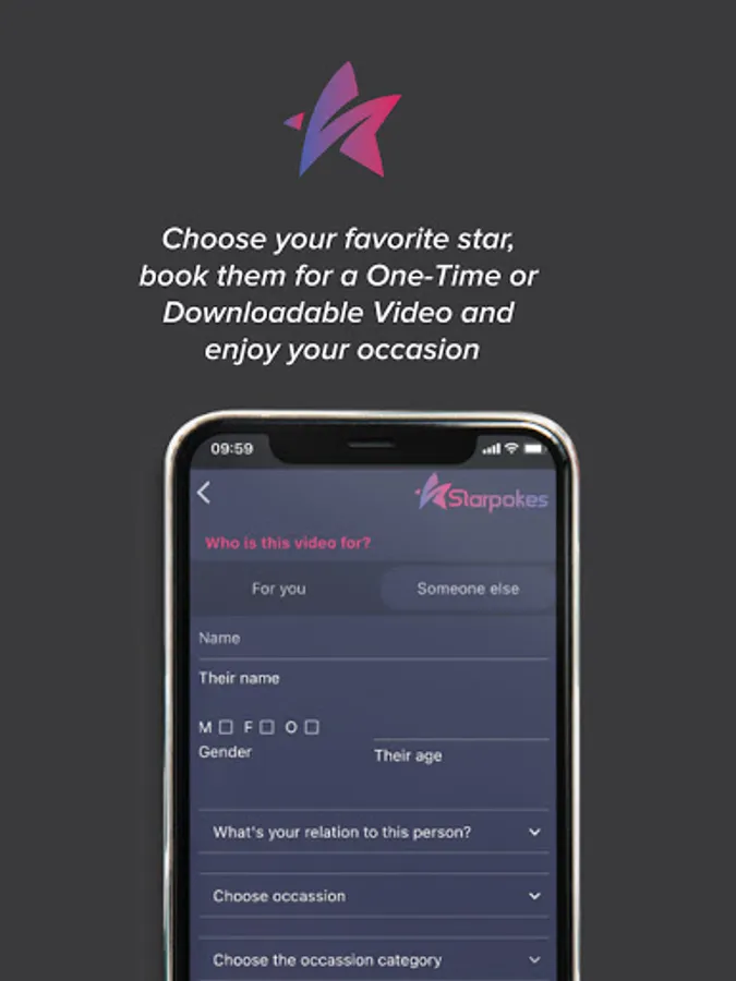 App that interconnects users with Stars through private videos. A user may request a video from a VIP for any occasion with a specific text/act expected from the Star to say in the video.