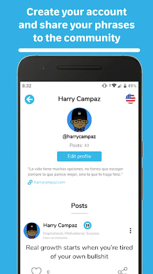 The best and funniest app of quotes in Spanish English and Portuguese, on Google Play. In this app you will find the best quotes of love, motivation, wisdom, friendship, life, humor and much more to share with your friends or that special person.