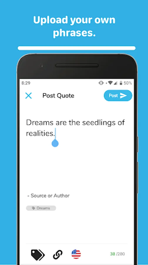 With fraSApp you have more than 20,000 selected quotes, it also offers you Motivation quotes, Happiness quotes and Friendship with images that you can download and have on your Mobile, quotes With images is updated daily.