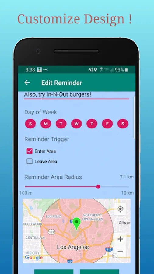 Not only can you define how large the notification area would be, but also you can restrict the reminders to be active in only certain days of the week.