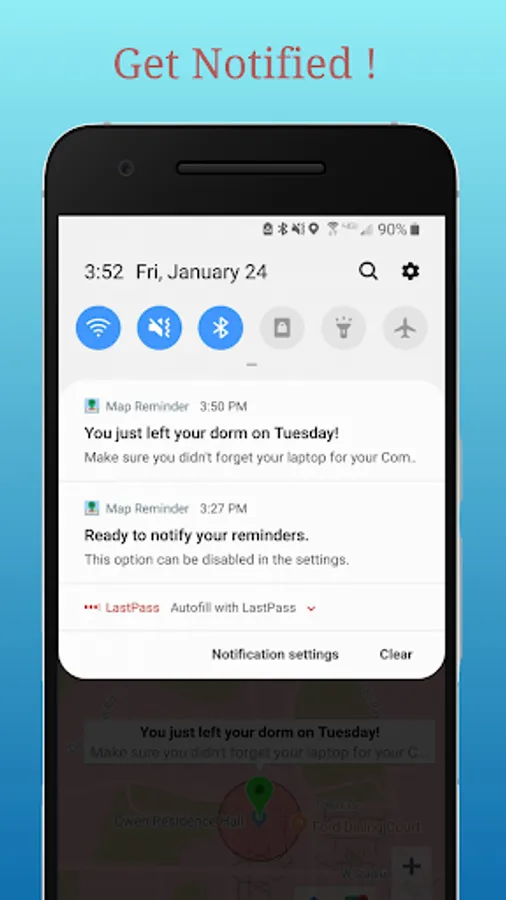 You have the option to have the app alert and notify you whenever you enter and/or leave the area around your note.