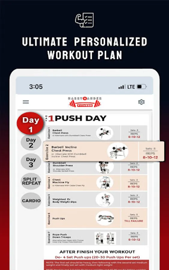 Harry Mander Fitness App provides daily workout routines for all your main muscle groups. In just a one hour daily workout, you can build muscles and keep fitness at home or your nearest gym, no coach needed, you must perform all the exercises as mentioned in your workout plan to get good results.