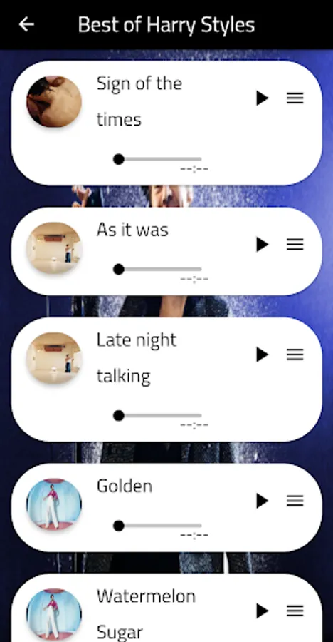 Get all Harry Styles songs and albums; Harry Styles, fine line and Harry's House in this app. You also get the feature of downloading them to your device and can set them as your ringtone.