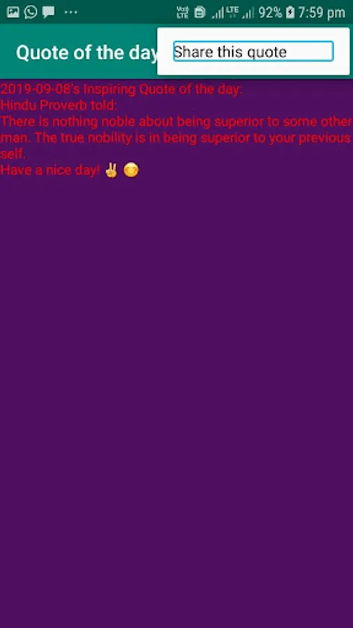Also, you can share quotes to your friends and loved ones and try to make their life even more better. No adds, No extra things, and a small size app.