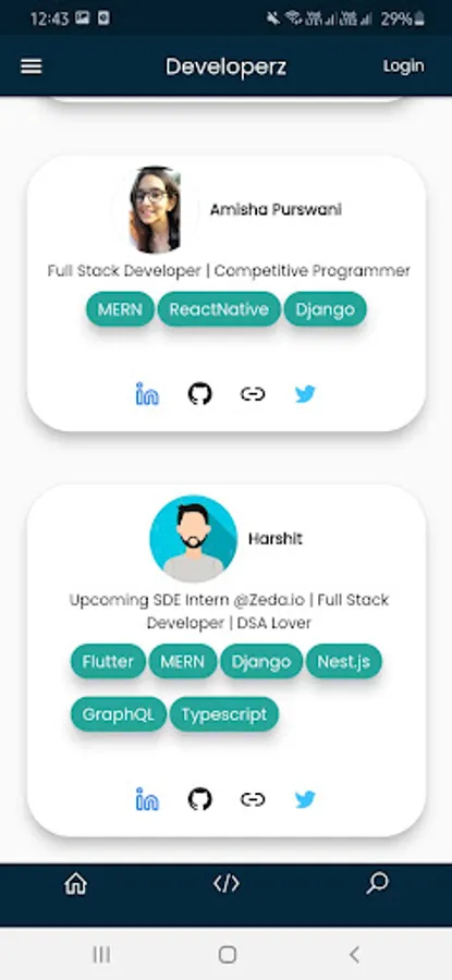 Developerz is an app developed by Harshit Rathi to connect developers around.