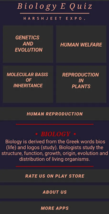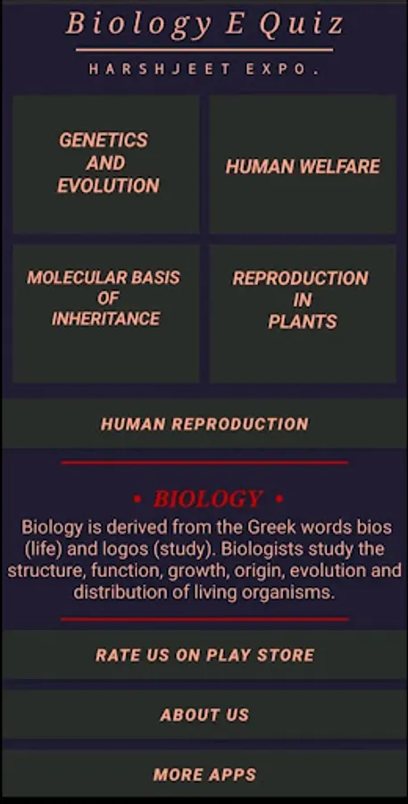 Biology e quiz is innovative android app provides learning materials with a fast and good user interface. Coupled with quiz on the provided contents.