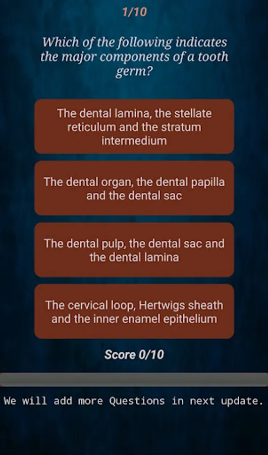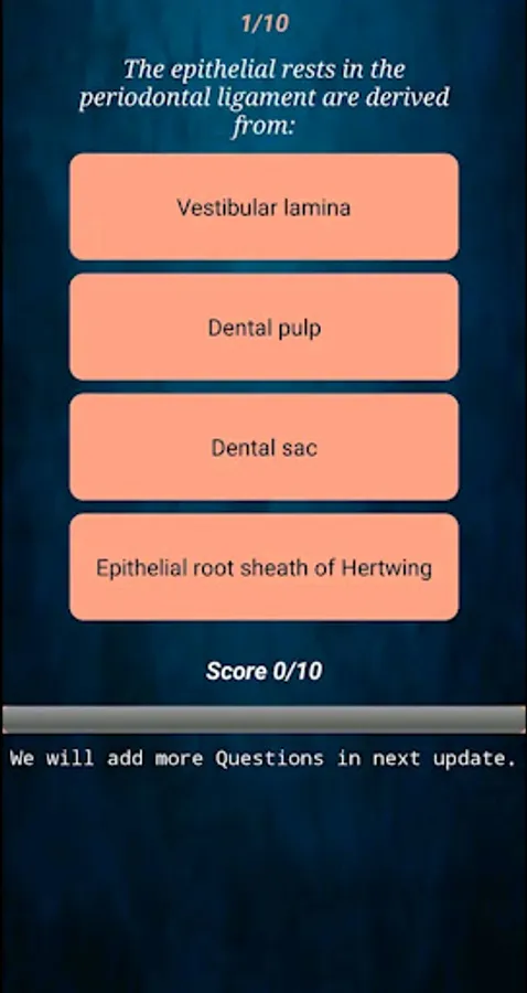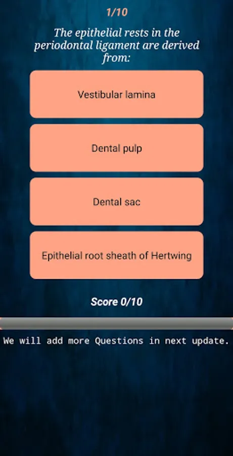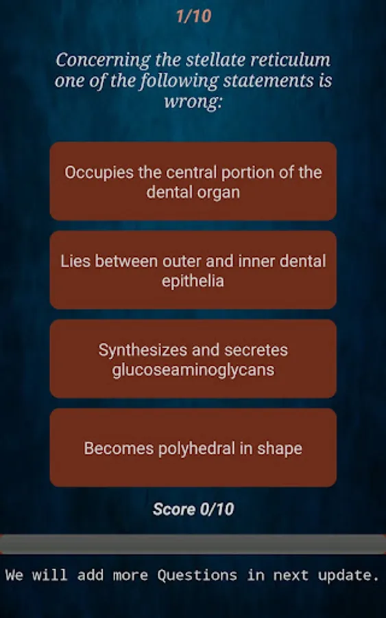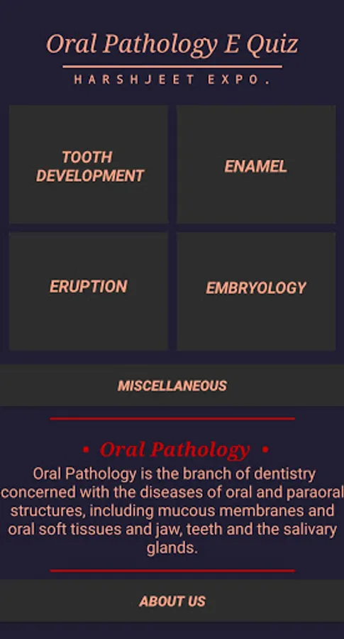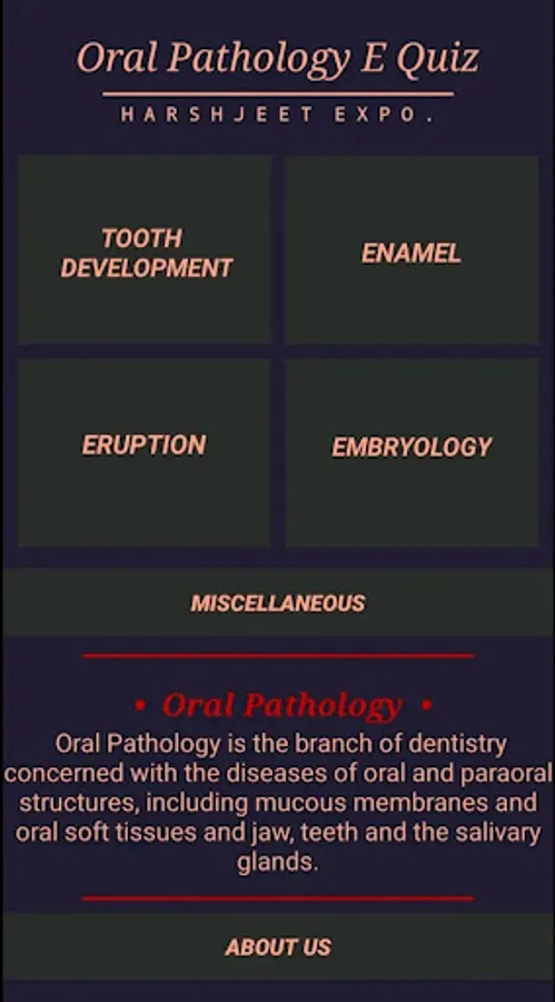 oral pathology e quiz app provide quality information for both dental student and practitioners. This outstanding resources has been completely update to include the most current and clinical aspects of modern oral pathology. In this app having topics wise quiz. This app helpful for Doctors, Medical college seat aspiring students, medical related competitive exams.