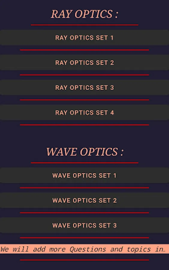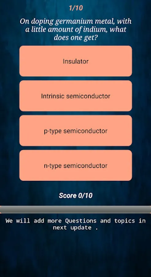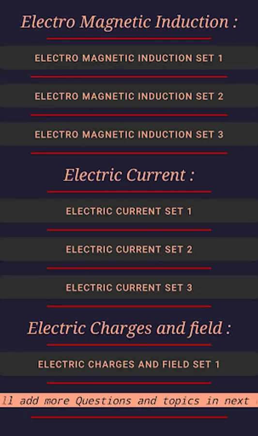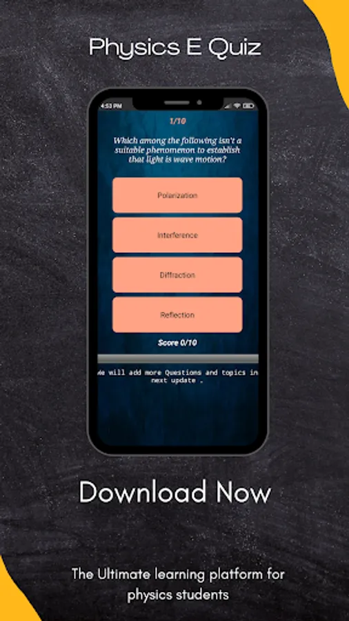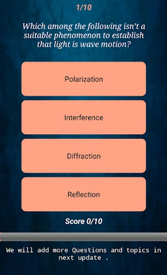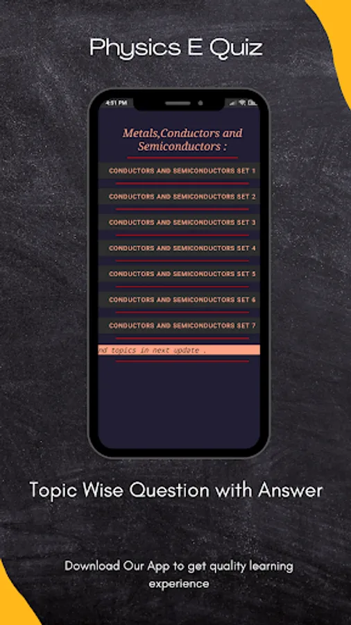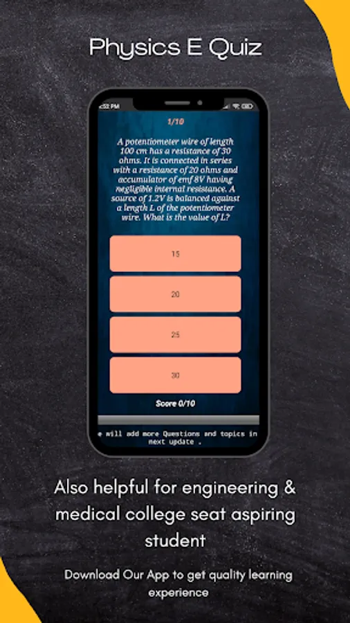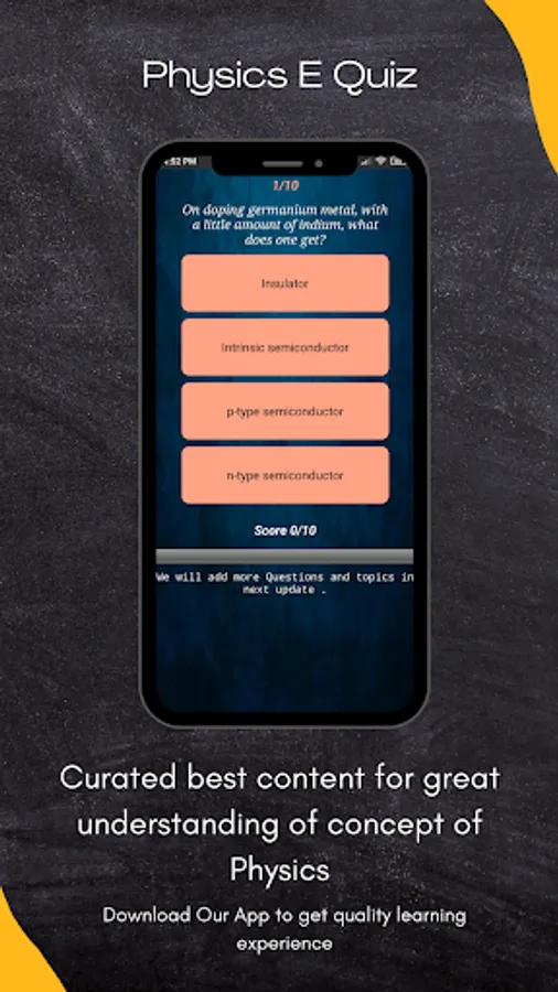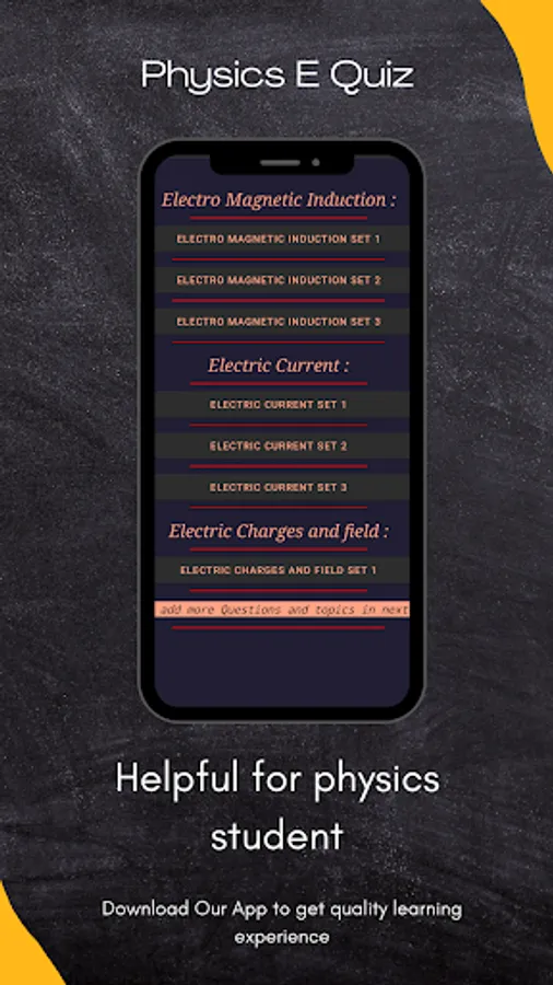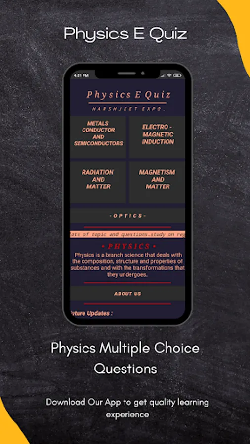 Physics e quiz is innovative android app provide learning materials with a fast and good user interface. Good UI with categorise questions and topic