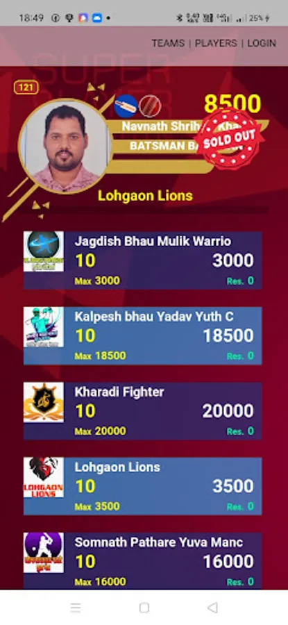 Super Player Auction : Cricket