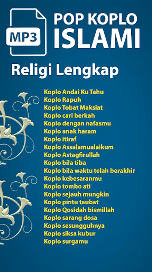 Hear a very heart touching rhythm in the popular Koplo version of the Islamic song application. The music player for Islamic Muslim songs offline soothes the soul and mind. The collection of Koplo religious Islamic pop songs is always melodious, the mp3 is pleasant to hear. This Koplo Islamic song application can be played without the need for an internet connection, so fans of Islamic music don't need to worry about quotas.