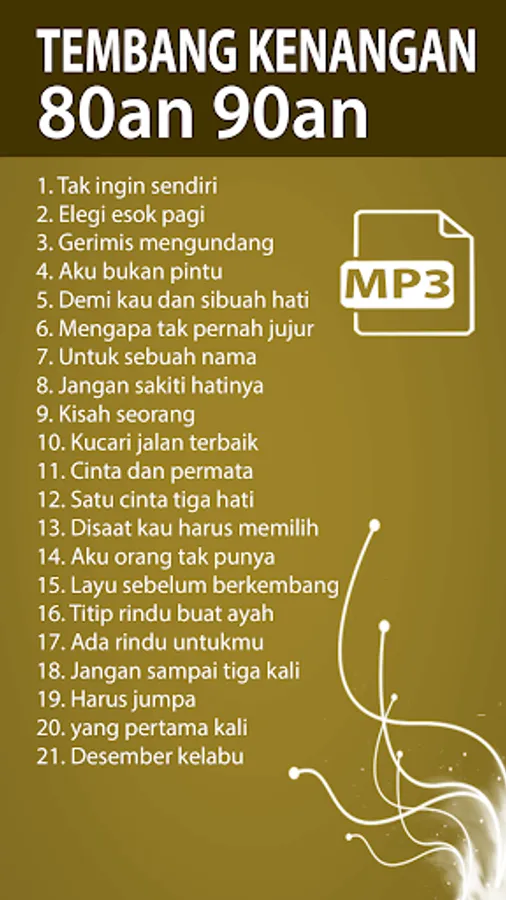 Memories of old songs from old times in the past. Legendary music songs in the 80s and 90s for you, an offline baby. You can play and listen to a collection of old school songs to remember our reunion and nostalgia. Fans of old school elegiac mp3s tomorrow morning still enjoy hearing memories of our youth with acoustic guitar rhythms that make goosebumps.