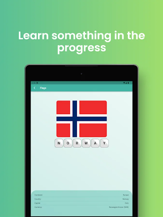 The Flags Game is a fun and educational app that allows you to test your knowledge about the flags, countries, and coats of arms of the world. The app features a collection of all the countries in the world, along with some important information about each country such as its capital, currency, and flag. As you play through the levels of the game, you will be presented with different flags, countries, or coats of arms, and you will need to identify them correctly to progress through the game.