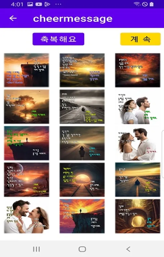 It is a large emoticon to share quotes and appropriate messages of encouragement with friends, acquaintances, and others in need of courage. I think it will be very useful if you share the emoticons with colorful pictures in the background on messengers such as KakaoTalk or Messages. I hope everyone can live a happy life... Thank you.