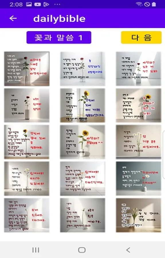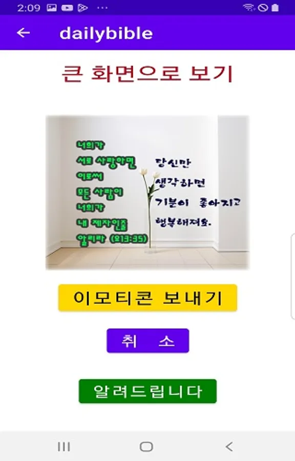 It is a large emoticon with the word of God on the left and a message of encouragement in line with the word on the right against the background of a flower picture. It will be especially useful for evangelism. I hope that there will be grace as the kingdom of God expands through the Word and power. *How to use: If you press the emoticon, a large screen will appear. After confirming, click Send Emoticon to share on KakaoTalk, Message, Band, etc. thank you