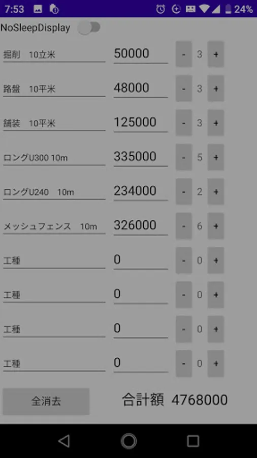 -You can instantly check the final total amount by changing the quantity for each type of work with the +/- buttons on site.