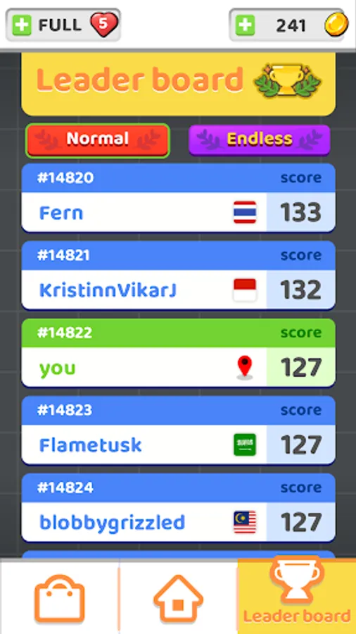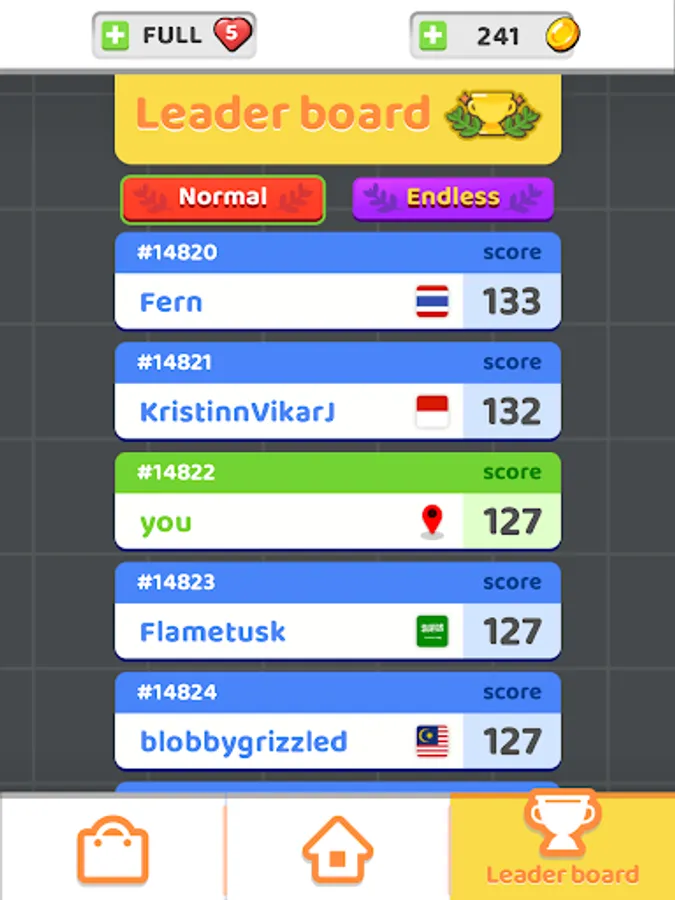 Keep your score up,Aim for the top of the world ranking on the leaderboard!
