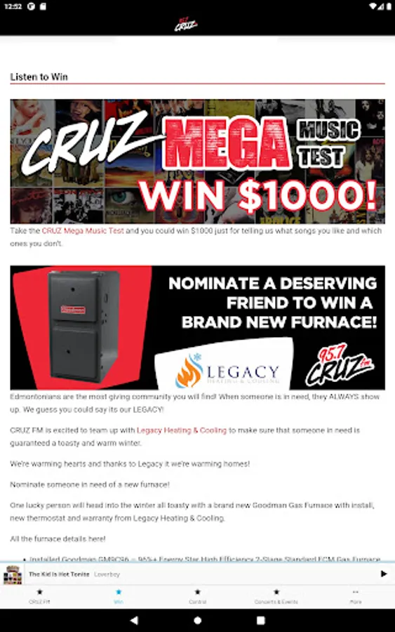 Download the app today to vote for your favourite songs with CRUZ Control, connect on Facebook, Twitter, Text, Instagram, YouTube & More! Plus, chat live with the station and other listeners, enter contests, and get insider info.