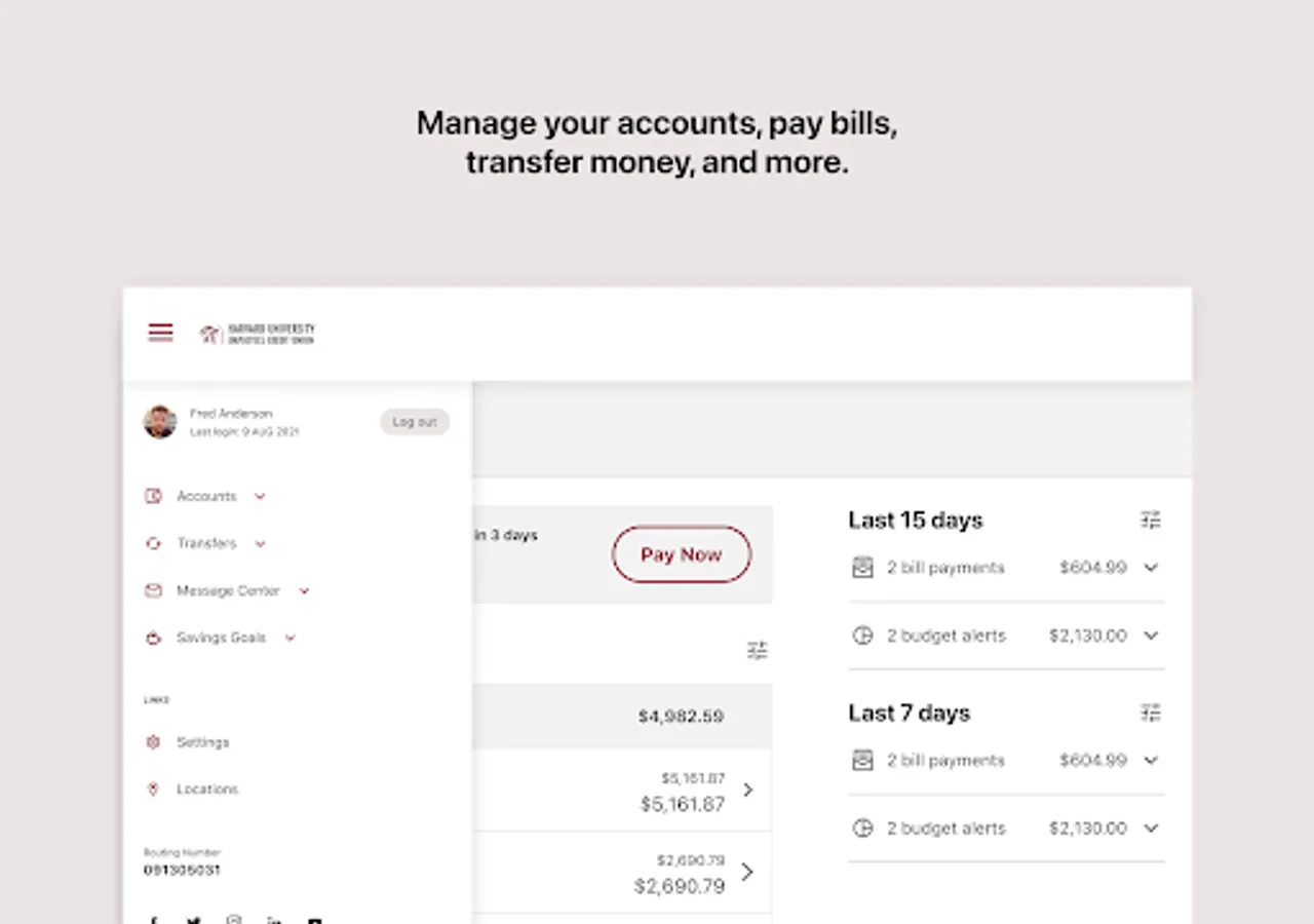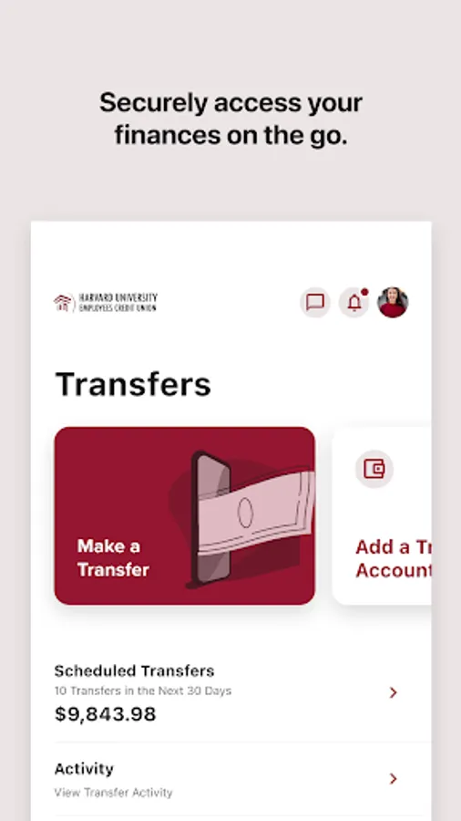 - Manage HUECU credit and debit cards, including travel notifications and turning cards on/off instantaneously