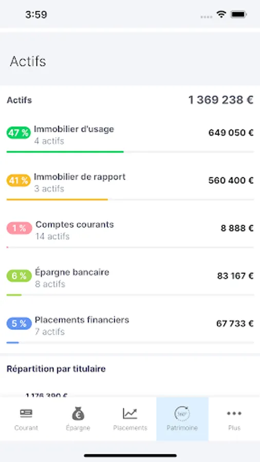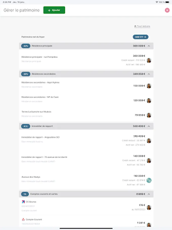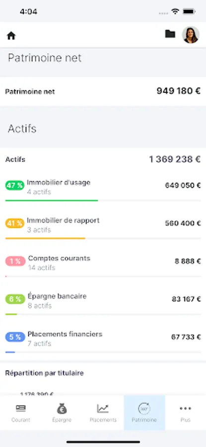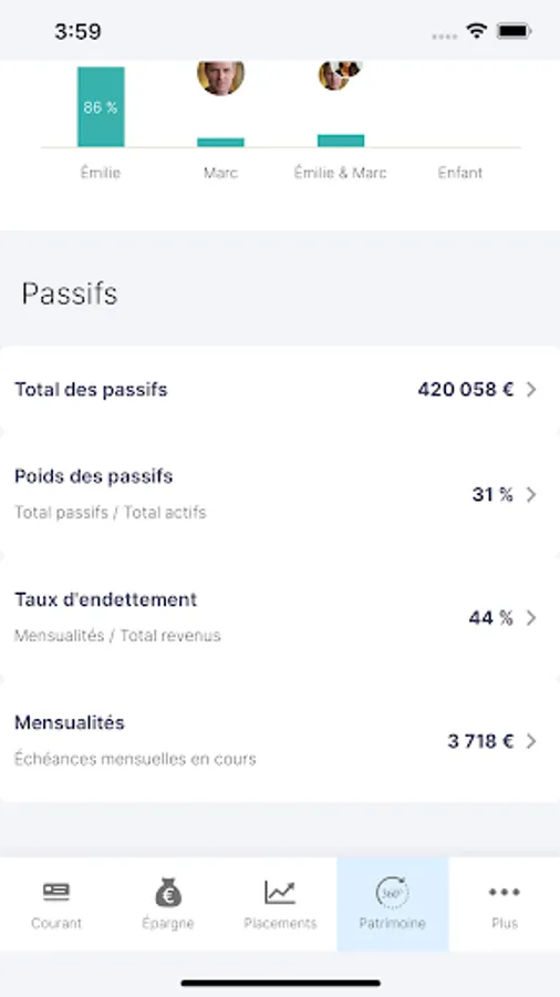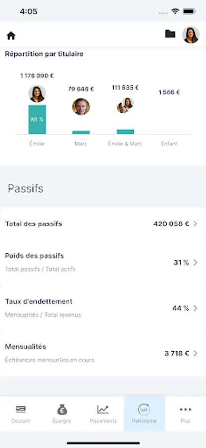 - Indicators alert you to each of the major themes: budget, composition of financial and non-financial wealth, retirement, marginal rate and average tax rate, portfolio audit, etc. These alerts allow you to identify the heritage projects that correspond to your profile, totally in tune with your situation.