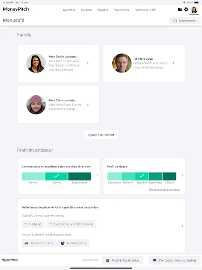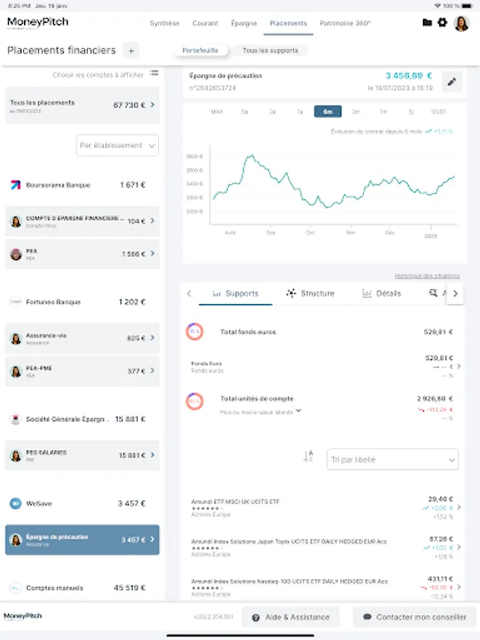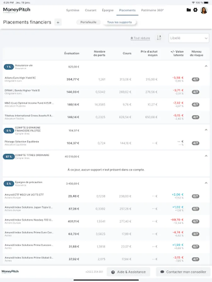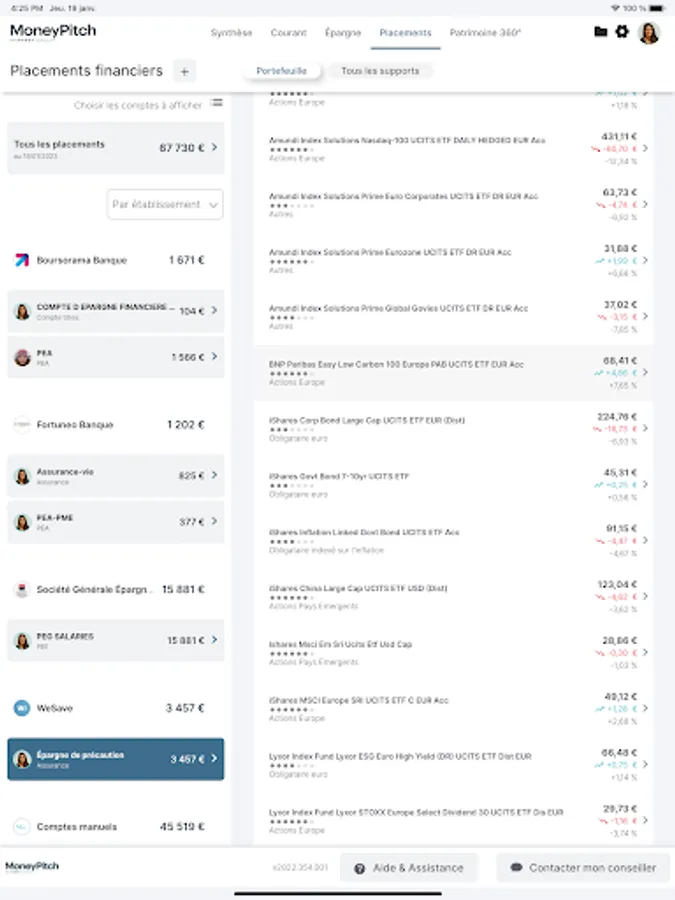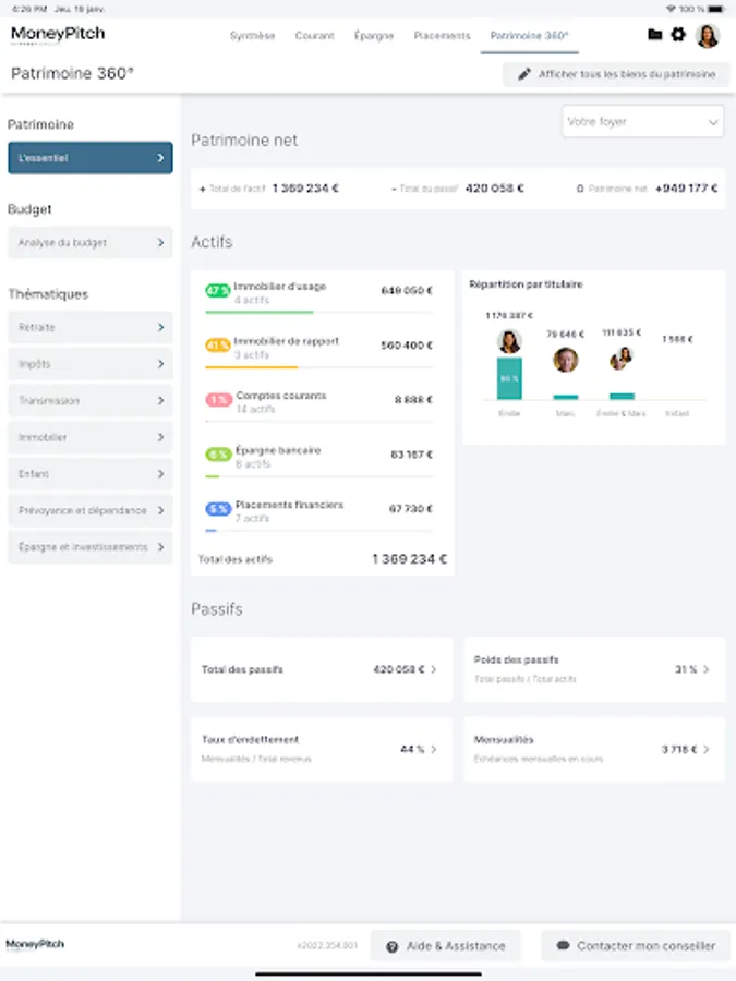 Proposed by your advisor who provides you with the necessary identifiers, MoneyPitch offers you a global understanding of your wealth in order to provide you with the best advice based on your life plans: