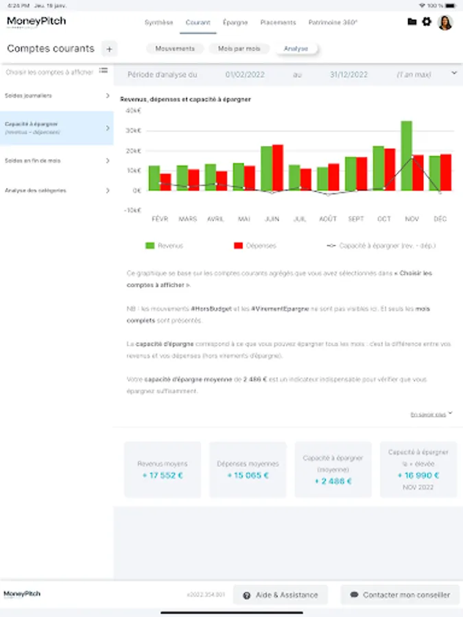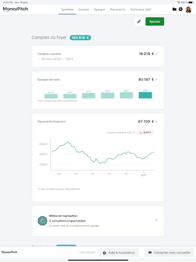 Thanks to this aggregation, MoneyPitch brings you indicators, alerts and notifications on your wealth trajectory: