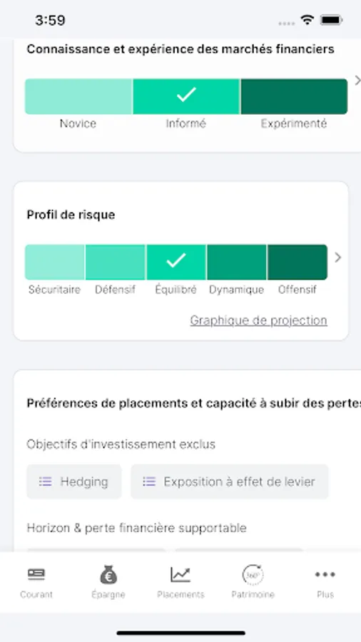 - You can also identify your exposure to the risk linked to your investments and be alerted of the possible gap between your exposure and your investor profile.