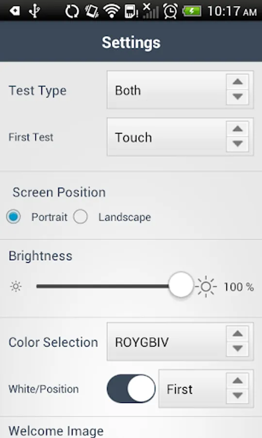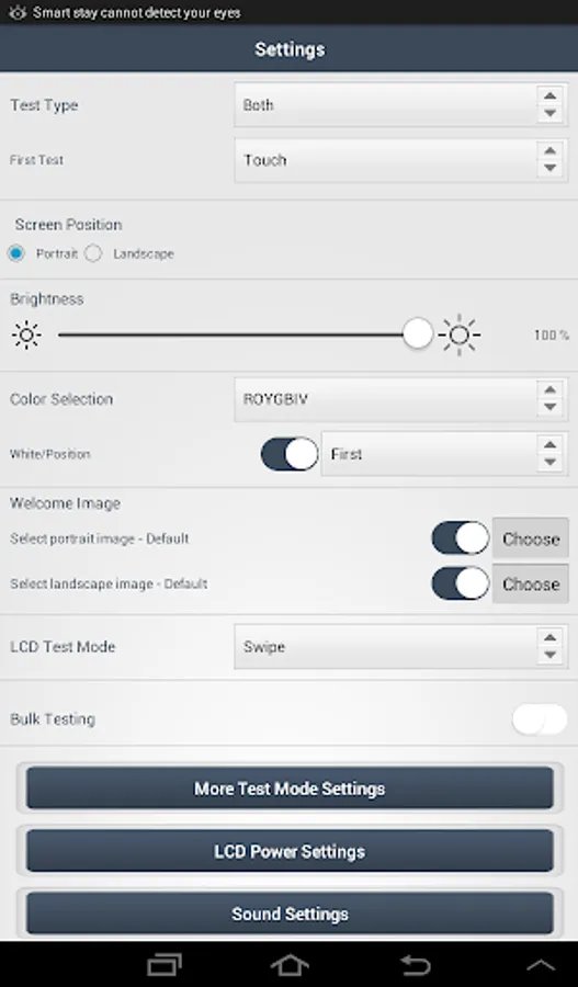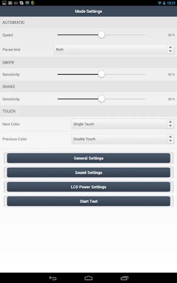 * Various testing modes including Automatic, Swipe, Touch and Shake.