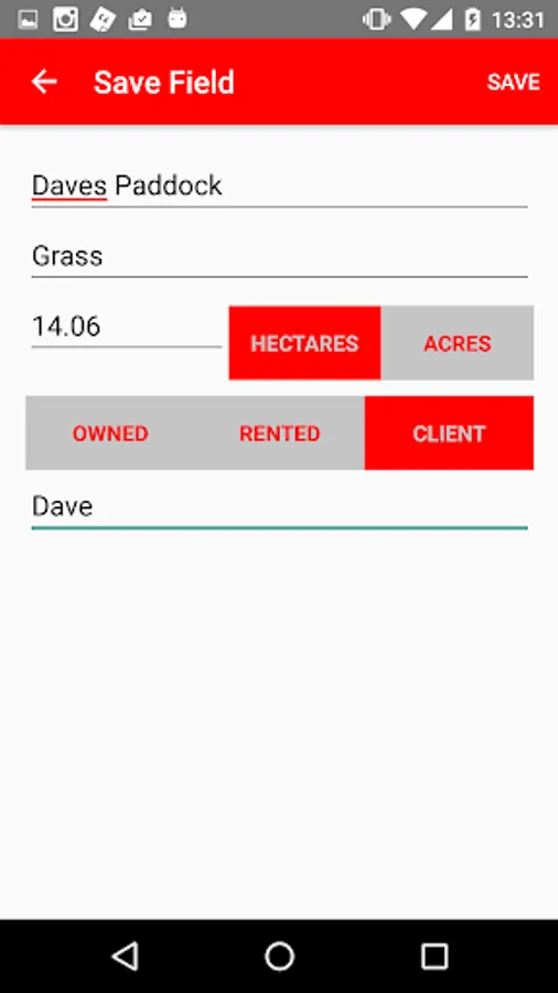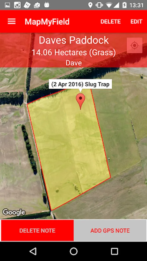 You can drop pins to draw the boundary or drive around the perimeter of the paddock. Save GPS notes to easily record notes on the field. Hectares and Acres area units are supported.