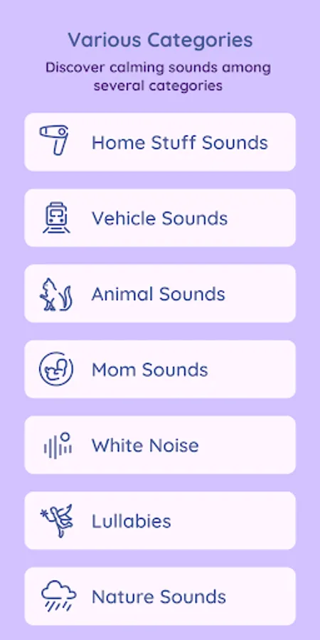 ★ 8 calming categories (Home Stuff, Vehicles, Outdoor, Nature, Animals, Mom, White Noise, Lullaby)