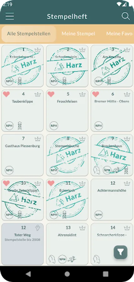 What would a hike in the Harz Mountains be without collecting stamps? You have the option of marking all the places you have visited in the digital stamp book. In addition to the overview of the stamp offices you have visited, you can mark your favorites for your next holiday in the Harz Mountains.