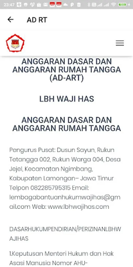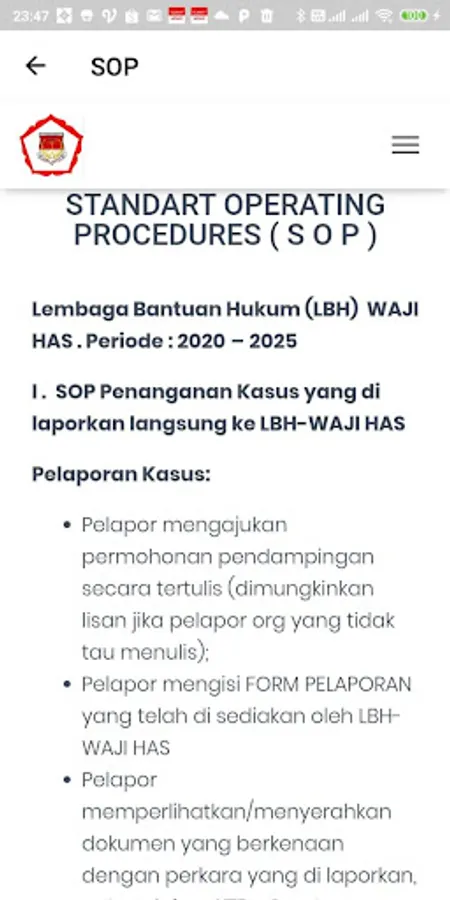Waji Has Legal Aid Institute In order to maximize the role of the Waji Has Legal Aid Institute (LBH) in providing legal aid services and work for communities throughout Indonesia, then through the Regional Work Meeting (RAKERDA), a vision and mission statement and mission that has a function as guidelines for running an organization. To realize this goal, LBH Waji Has has the following vision: "Realizing LBH Waji Has Legal Aid Service (PBH) Tough, Reliable, and Professional and Responsible in Providing Legal Aid to Communities throughout Indonesia as well as Repositioning Laji Waji Has Office as a House of Advocacy for Justice, Human Rights and Democracy which is Supported by Representative Facilities and Infrastructure Facilities. " The vision of LBH Waji Has then has been elaborated and implemented in the following mission: Conducting cadre recruitment activities through the Legal Aid Training Work (KALABAHU) and / or Legal Aid Student Training Work (KALAMBAHU)