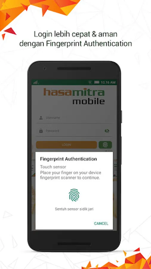9.hasamitra mobile dilengkapi dengan fitur Biometric login menggunakan sidik jari.