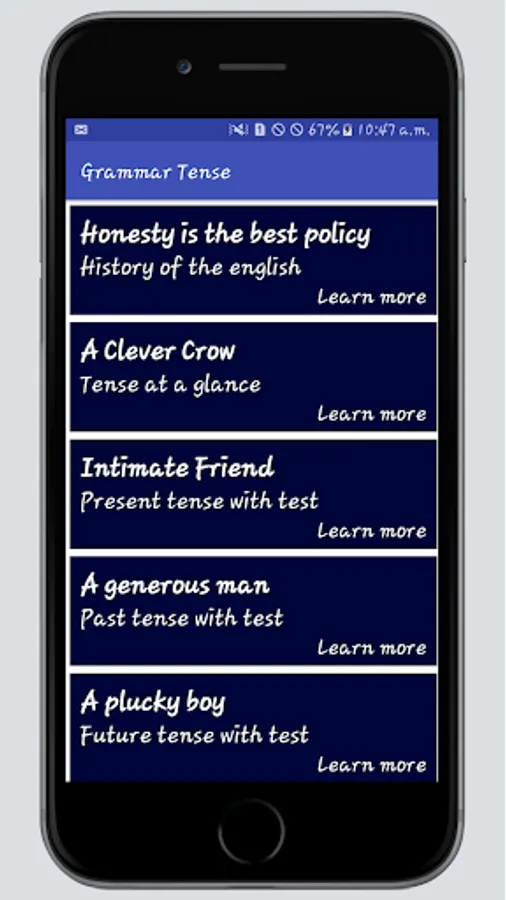 learn easiest way and practice day by day to improve your english of this applications. Grammar tense mainly focus practice for learn english quickly. so read this application everyday.