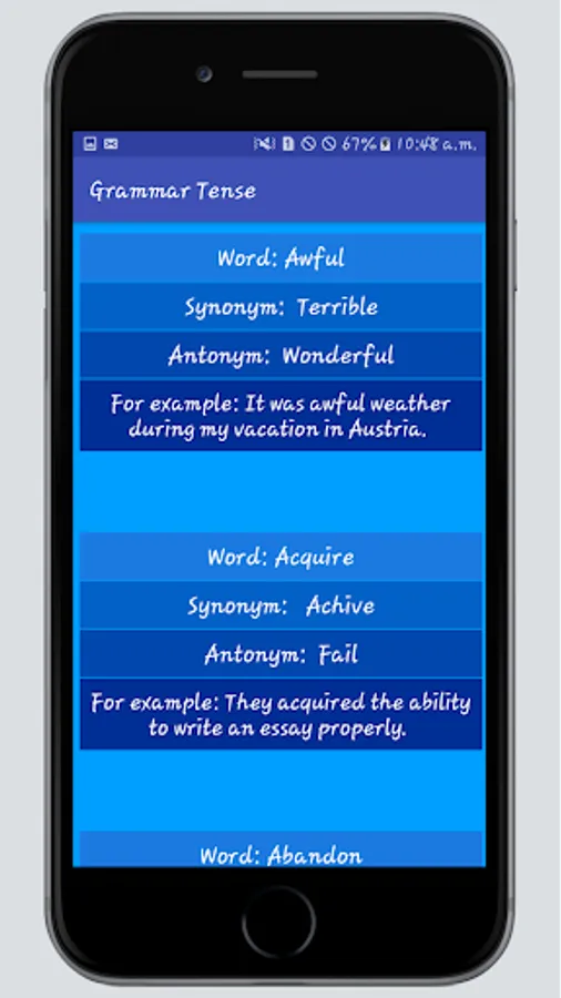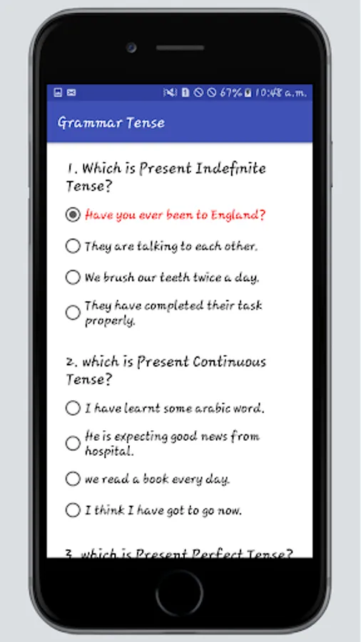 This app will provide you some outstanding facilities to learn English grammar tenses. You will be able to speak English fluently through this app after learning sentence making formula. Reward yourself after learning so that it will encourage you to achieve your goal and practice with your partner as much as possible.