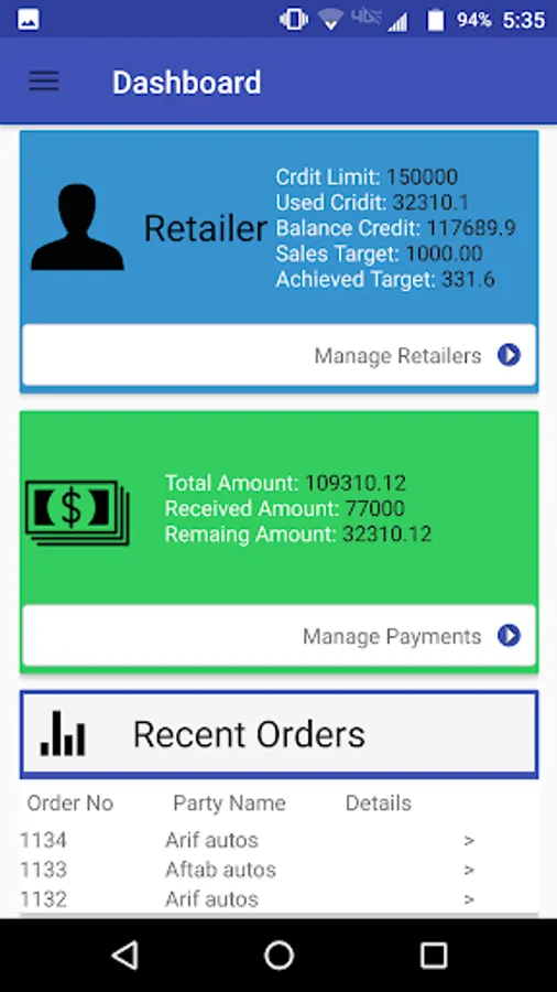 An application for salespersons of Mehran Oils (Pvt.) Limited, User can manage retailers, book new orders and receive payments using this software