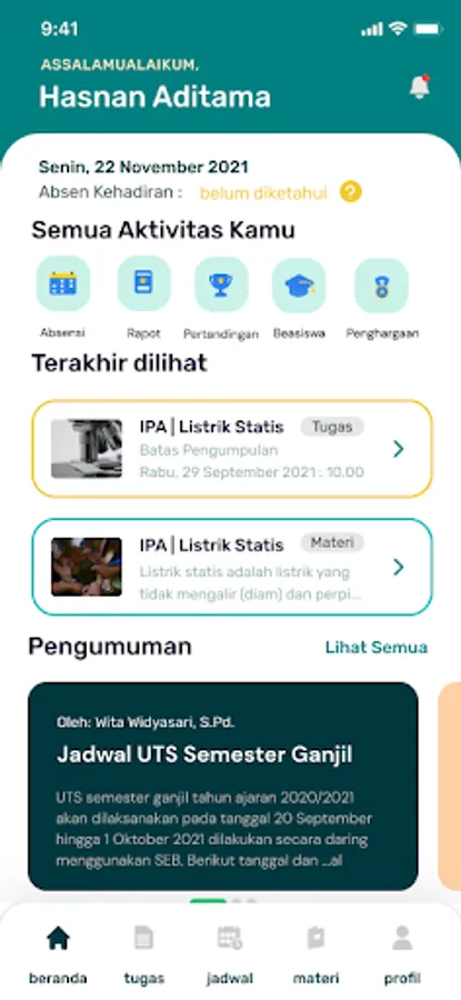 Hasan Edutech Student App hadir untuk membantu murid dan sekolah berinteraksi secara mudah, aman, dan fleksibel. Dengan mengintegrasikan sistem sekolah berbasis web yang juga dibangun oleh Hasan Edutech, setiap info sekolah, aktifitas belajar mengajar, dan perkembangan murid di sekolah dapat dipantau pada aplikasi Hasan Edutech Parent App.