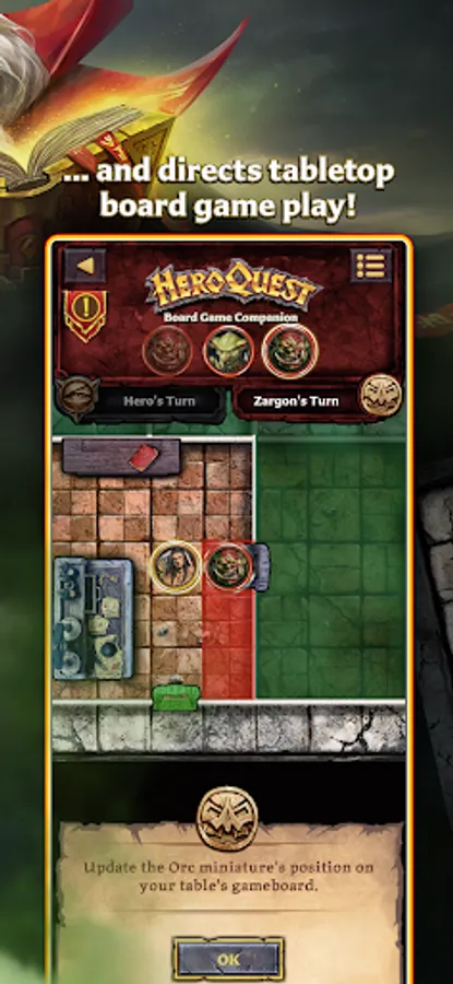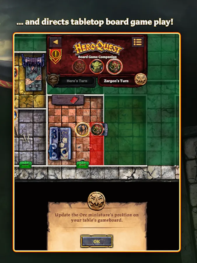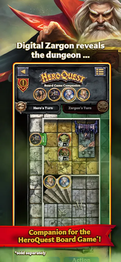 Meet your new Game Master. The free HeroQuest Companion App allows you to run your next tabletop game session so everyone can play as heroes! The app takes on the role of Zargon using the onscreen quest map.