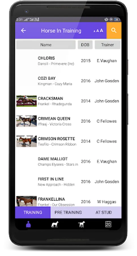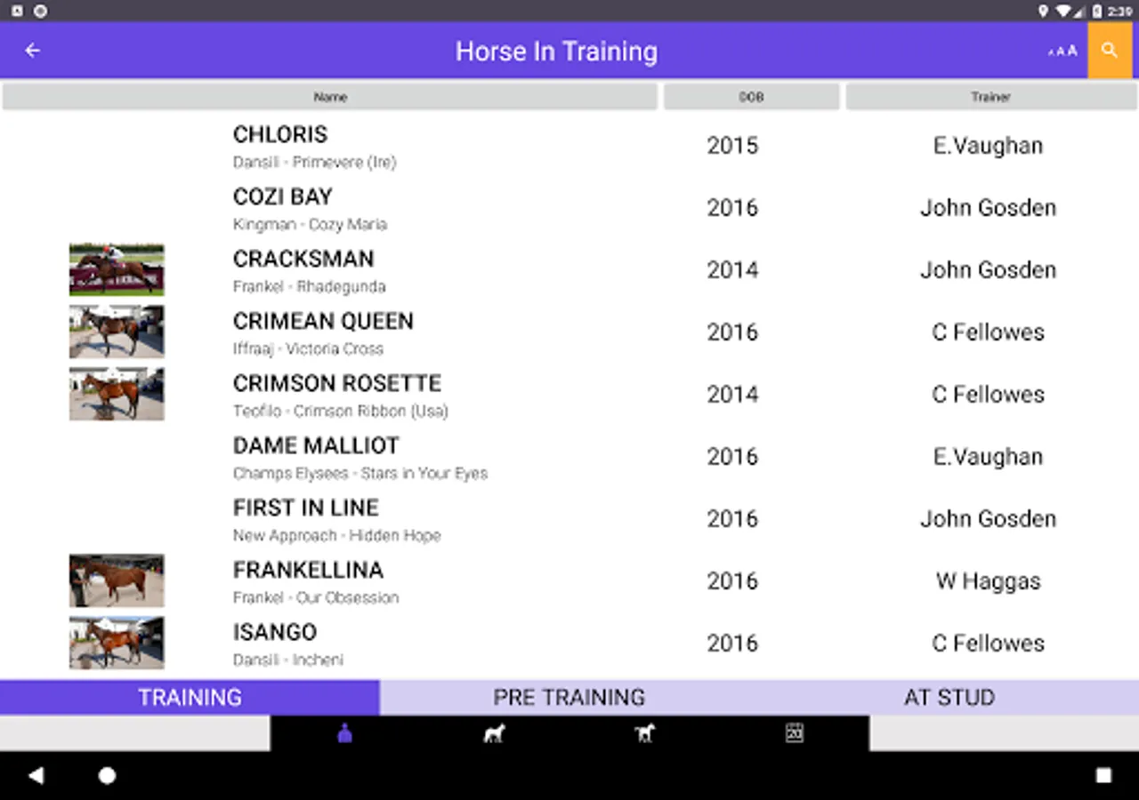 The Hascombe Stud App contains individual images & in depth profiles for all of the Stud's Foals, Yearling and Broodmares, including comprehensive data for all Horses in training and pre-training. The App also includes additional Diary Notifications for key events, in the Stud’s day to day operations and upcoming races.