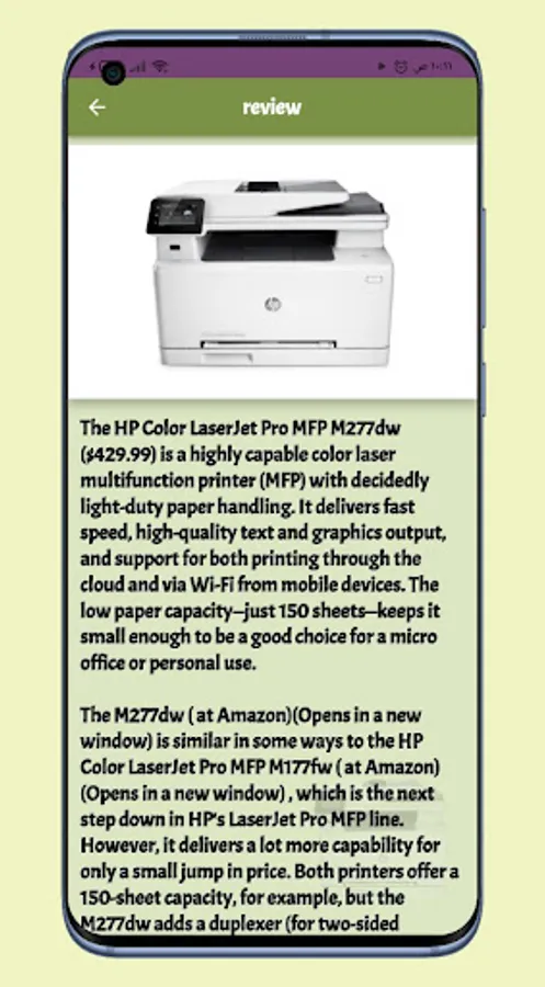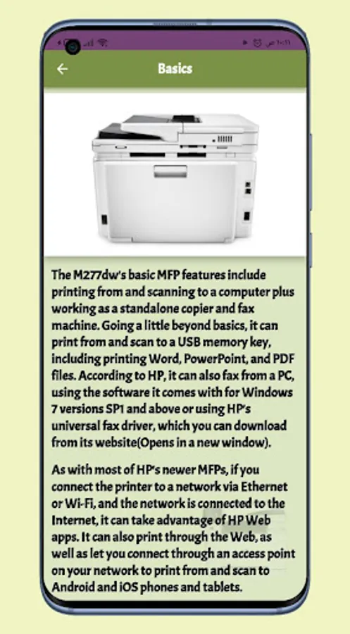 Through the application hp laserjet pro mfp you can learn about many specifications and features of a printer hp laserjet pro mfp, and the application also includes an application hp laserjet pro mfp on the video, features and specifications easily