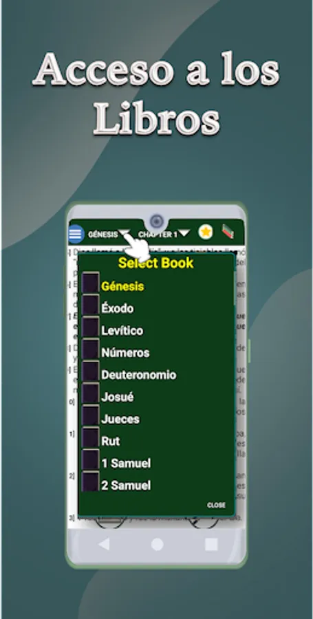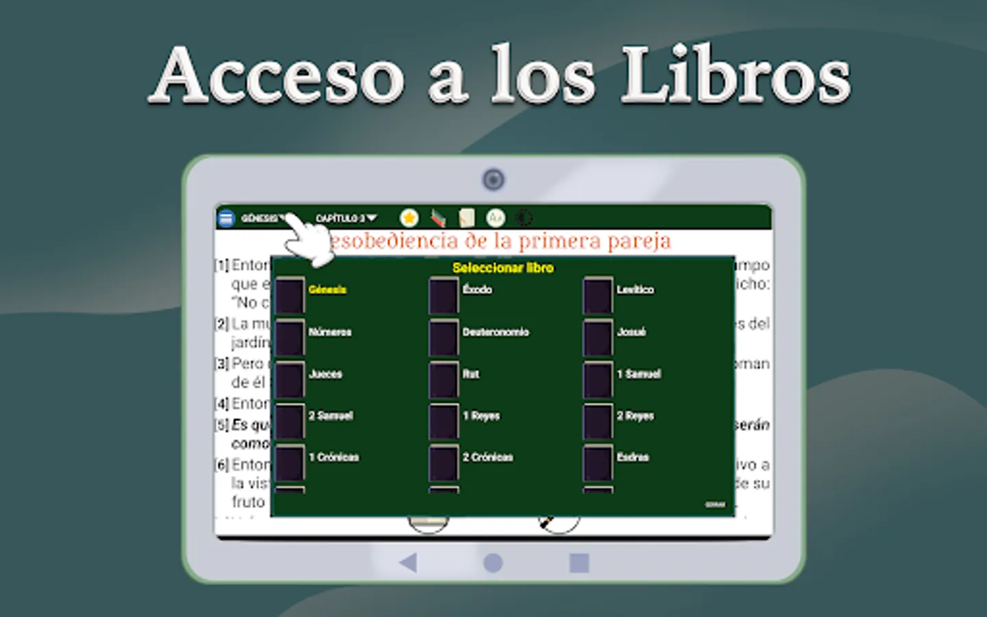 You can click on the screen and the name of the book and the chapter will appear at the bottom, when pressing it the list of books will appear and in the other the chapters that the selected book has.