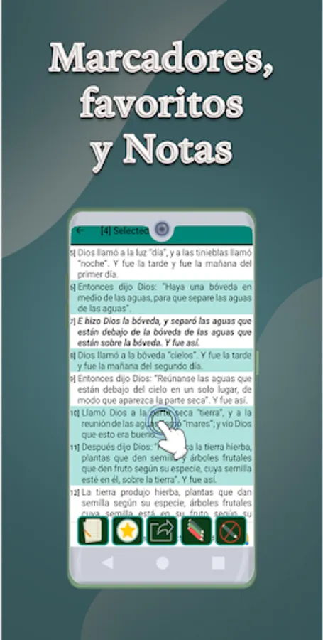 You can select one or more verses from a chapter and mark as a favorite you can also share the verses with your friends on different social networks.
