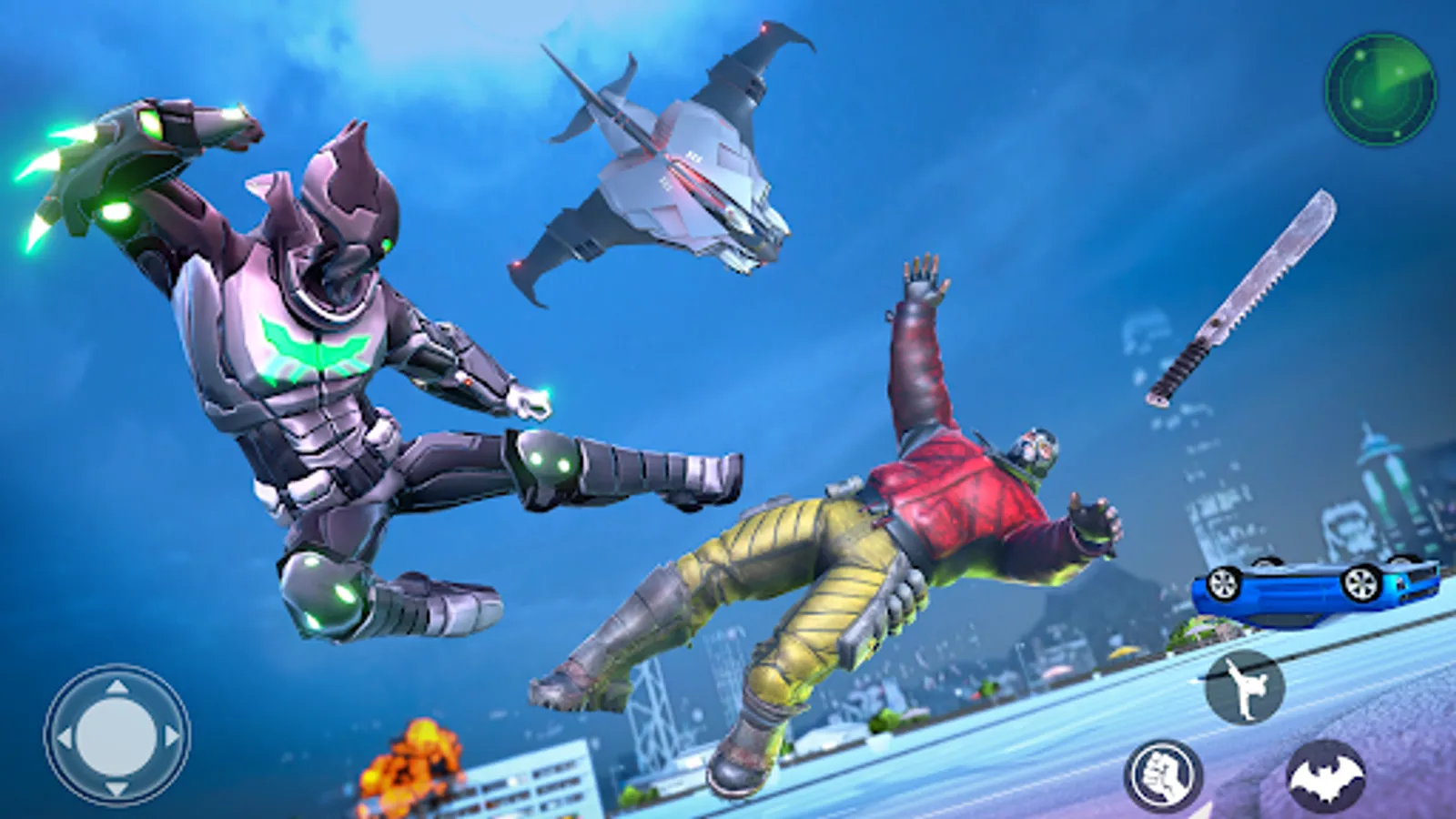 In Flying Bat Hero Robot, players get powerful bat robot with the ability to fly through the skies of a futuristic city. This game is sure to provide hours of entertainment for fans of action-packed flying games. As the flying bat hero robot, players will use their wings and jetpack to soar through the skies of the city, dodging obstacles and enemies along the way. Players will need to use their quick reflexes and skillful flying to avoid crashing and keep their Flying Bat robot moving at top speed.