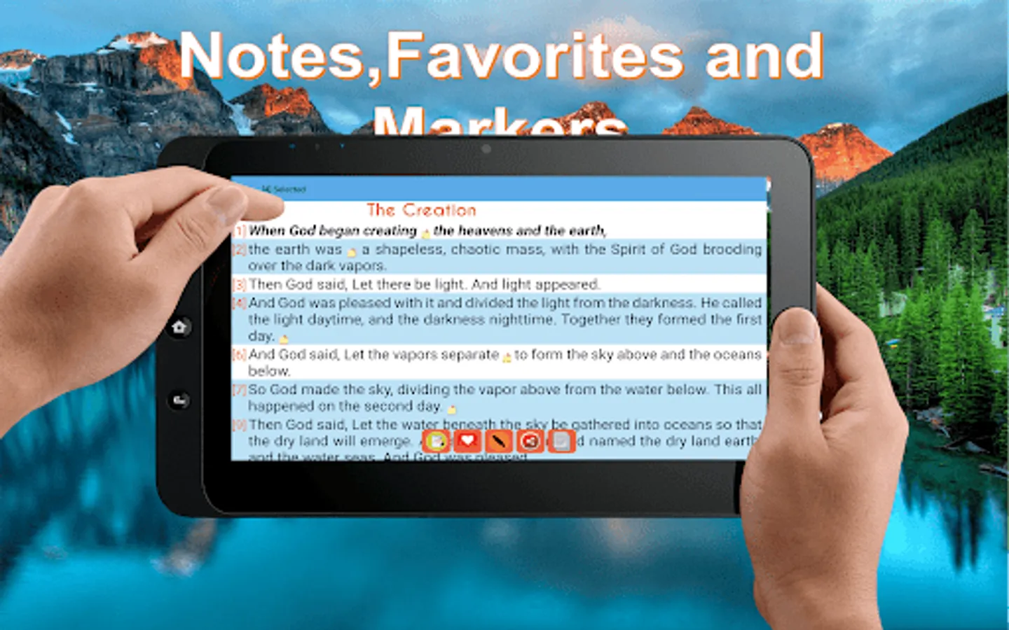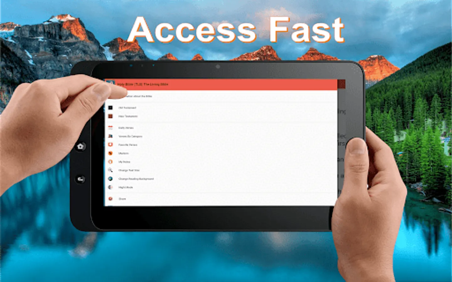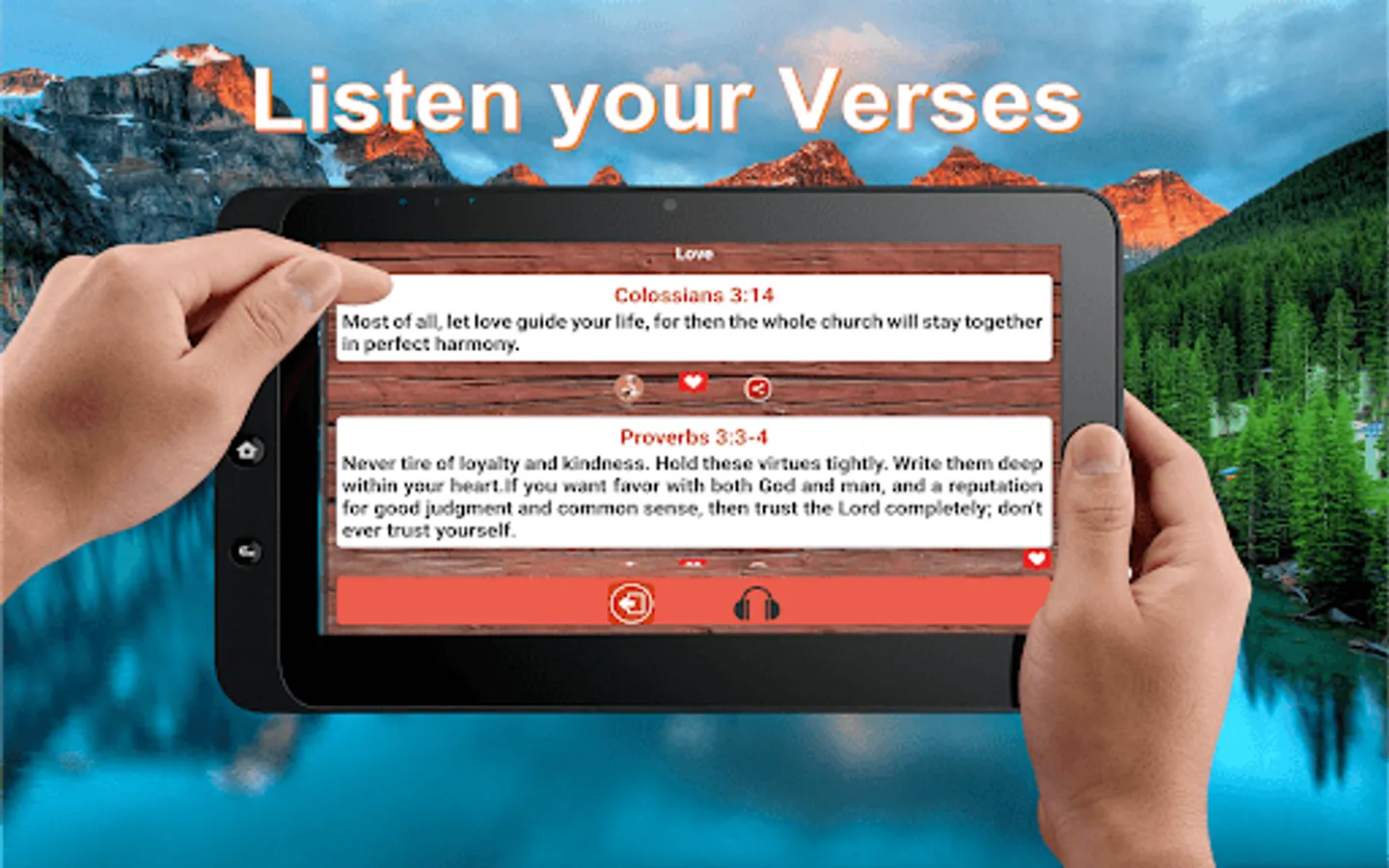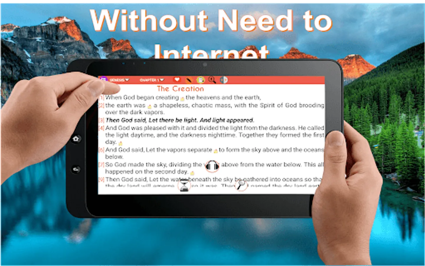 he message of God’s story is timeless; the Word of God doesn’t change. But the methods by which that story is communicated should be timely; the vessels that steward God’s Word can and should change. One of those timely methods is Bible translation. Bible translations are both a gift and a problem. They give us the words God spoke through his servants, but words can be poor containers for revelation because they leak! The meanings of words change from one generation to the next. Meaning is influenced by culture, background, and many other details. Just imagine how differently the Hebrew authors of the Old Testament saw the world three thousand years ago from the way we see it today! Characteristics of the application The application is easy to use and allows you to listen and read the sacred scriptures quickly and easily, without the need of an internet connection. You can pause the playback of the chapter and listen to it where you left it again and choose the verse wherever you start when reading. The audio playback performed by the application is using the Voice Synthesizer that contains the cellular device or tablet. If the device does not support this functionality, the program will indicate it. Access to the options menu quickly and sensibly.