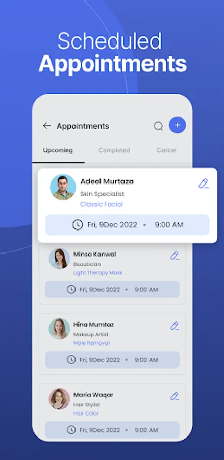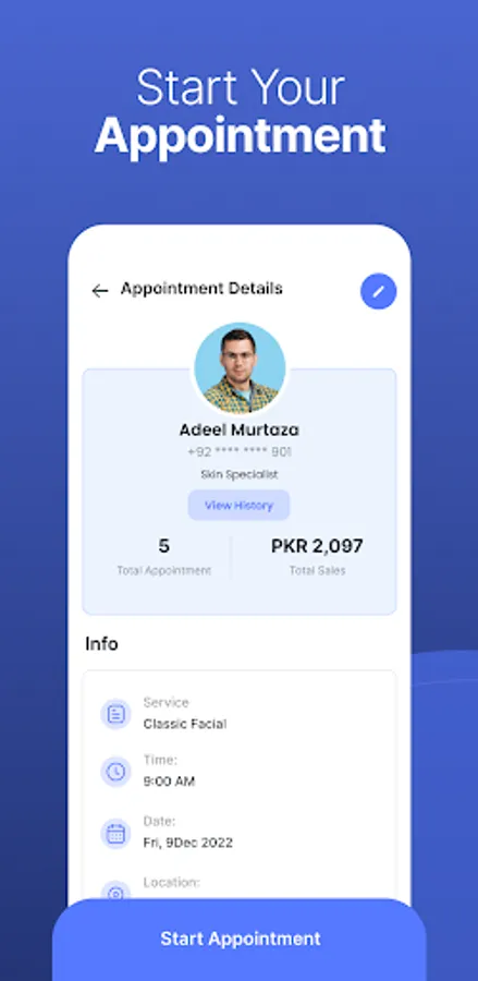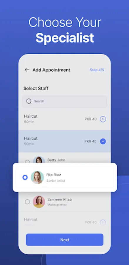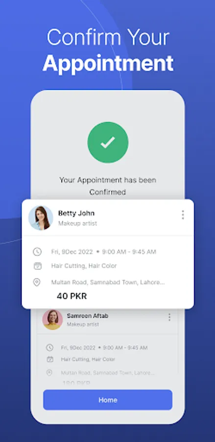 Staff will log in the app by using credentials provided by the business admin, they can book appointments with clients, apply for leaves, view their attendance and payroll.